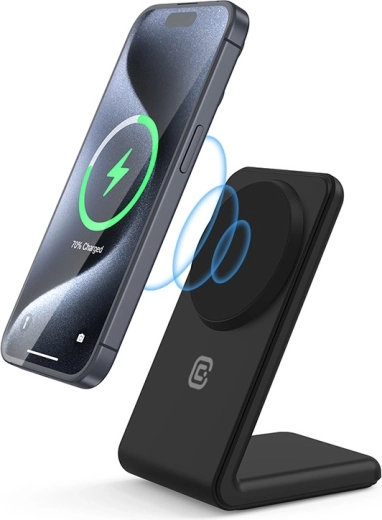 Le chargeur sans fil compact MagSpot Stand 2‑en‑1 avec technologie MagSafe recharge simultanément votre iPhone et vos AirPods. Le support minimaliste économise de l’espace, maintient le téléphone de façon stable en mode portrait et StandBy et, grâce à l’anneau MagSafe surélevé, il est compatible avec tous les modèles d’iPhone 12 et plus récents. Puissance maximale jusqu’à 15 W pour iPhone et 5 W pour AirPods, câble USB‑C inclus.