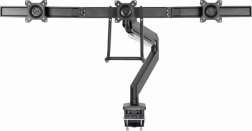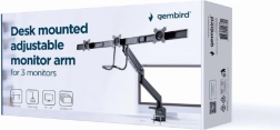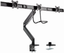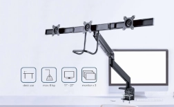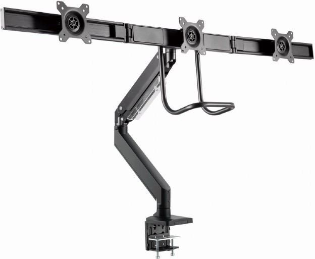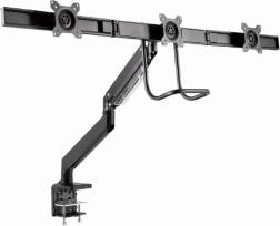 Ce support réglable pour moniteurs permet de placer confortablement trois écrans côte à côte, idéal pour les environnements de travail professionnels. Grâce à sa construction métallique robuste et ses bras flexibles, il offre une stabilité et une adaptabilité maximales.