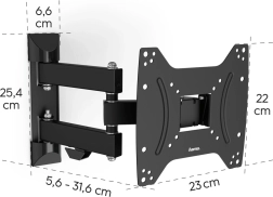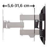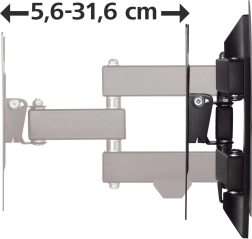 Compatible avec les standards VESA de 75x75 à 200x200 mm, il supporte un poids de téléviseur jusqu’à 20 kg. La distance maximale et minimale par rapport au mur est de 31,6 cm et 5,6 cm, ce qui permet un ajustement selon les préférences individuelles. La couleur noire de la tôle d’acier s’intègre facilement dans la plupart des intérieurs.
