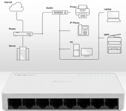 Tirez davantage parti de votre réseau avec le commutateur compact QOLTEC. Huit ports RJ45 permettent de connecter simultanément jusqu’à sept appareils terminaux et une liaison montante vers un routeur ou un modem. Le commutateur prend en charge les vitesses 10/100 Mb/s (Fast Ethernet), fonctionne en double et semi‑duplex et, grâce au contrôle de flux IEEE 802.3x, assure un transfert de données fluide et fiable.