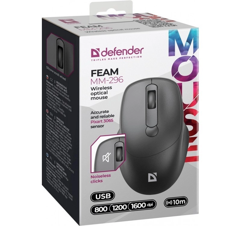 La souris sans fil DEFENDER FEAM apporte confort et silence au quotidien. Grâce aux boutons à silent click, elle ne dérange pas votre entourage, tandis que sa forme ergonomique assure une utilisation confortable toute la journée. La précision jusqu’à 1600 DPI convient au travail bureautique courant et à la navigation sur le web.