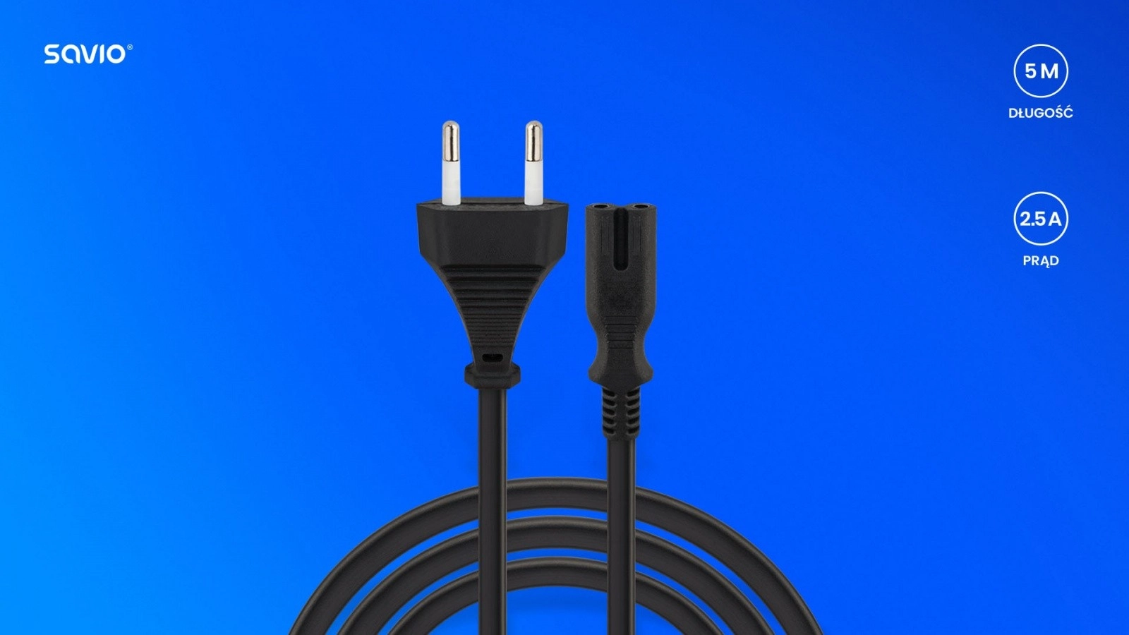 Le câble d’alimentation SAVIO CL-185 de 5 m offre une alimentation sûre et stable pour les appareils domestiques et de bureau. Grâce à son conducteur en cuivre et à ses connecteurs IEC C7 et CEE 7/16 (type C), il assure une excellente conductivité, une longue durée de vie et une large compatibilité avec les ordinateurs portables, téléviseurs, adaptateurs et autres équipements.