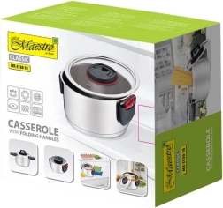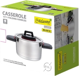 La casserole en acier inoxydable Maestro apporte qualité et efficacité à votre cuisine grâce à sa construction en acier inoxydable de haute qualité. Grâce au fond thermo-accumulateur multicouche, la répartition de la chaleur est uniforme, ce qui économise de l'énergie et améliore les résultats de la cuisson. Un couvercle en verre avec un trou pour la sortie de la vapeur vous permet de contrôler la cuisson sans soulever inutilement le couvercle.