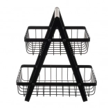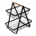 Élégant panier à deux étages pour fruits et légumes avec poignée en bois offrant une grande capacité sur une petite surface, une base stable et un transport facile. Son design minimaliste noir s’intègre parfaitement aux cuisines loft et modernes, tandis que la structure ouverte assure une circulation de l’air et une fraîcheur prolongée des aliments stockés.