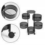 La construction en tour permet un gain de place, et les roulettes assurent un déplacement facile, faisant de ce meuble une solution unique, appréciée non seulement par les foyers. Il est également idéal dans les salons de beauté ou autres établissements de services, où l’ordre et l’accès rapide aux accessoires ou aux produits sont essentiels. La structure ajourée de l’étagère facilite son entretien, permet de voir ce qui est rangé sans ouvrir de tiroirs, tout en lui conférant esthétique et légèreté.