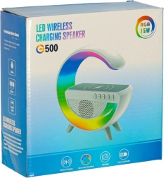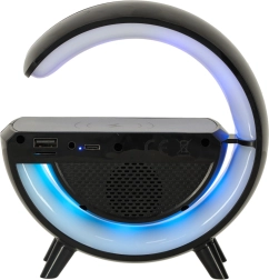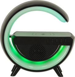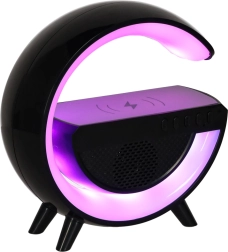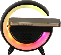 Fonctions de l’appareil : charge sans fil, éclairage RGB avec de nombreux modes réglables, radio FM et haut-parleur pour écouter de la musique via Bluetooth ou depuis une carte SD. Grâce aux boutons intuitifs, l’utilisation est simple et confortable, facilitant la bascule entre les différents modes et réglages.