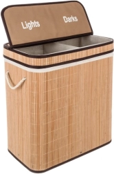 Ce panier à linge à deux compartiments est fabriqué en bambou durable, qui est non seulement résistant mais également écologique. La construction unique garantit que le panier reste stable même lorsqu'il est complètement rempli. Avec une capacité allant jusqu'à 100 litres, il est idéal pour une plus grande quantité de linge. Son design élégant et stylé s'intègre facilement dans n'importe quel intérieur.