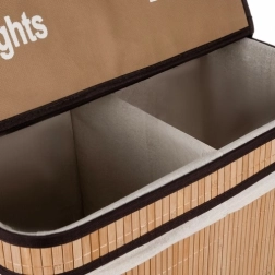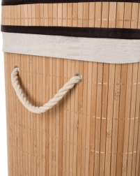 Les bandes verticales en bambou combinées à la doublure en tissu et au couvercle ne sont pas seulement esthétiques mais offrent également une solidité et résistance. Les pratiques poignées en corde facilitent le transport du panier même lorsqu'il est plein.