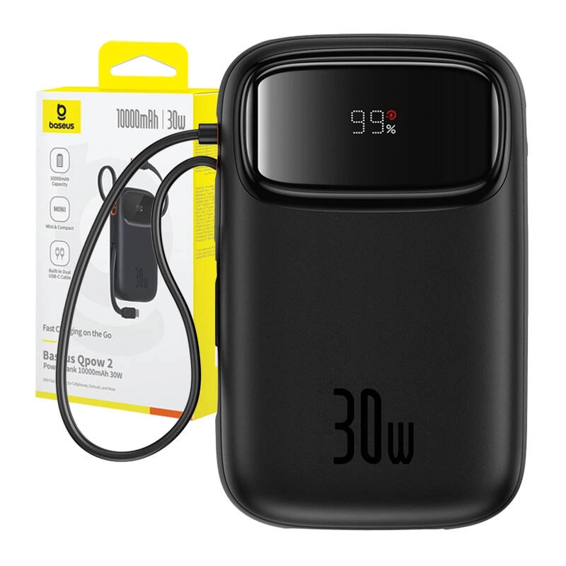 Emportez l’énergie partout. La powerbank Baseus QPow 2 associe une grande capacité de 10 000 mAh à une puissance de 30 W pour une charge bidirectionnelle rapide via USB‑C. Grâce au câble intégré et à l’écran LED lumineux, tout est à portée de main – sans accessoires superflus.