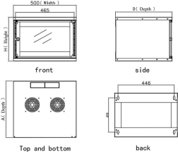L’armoire est conçue avec un accent sur le refroidissement et le câblage. Les perforations au plancher et au plafond permettent l’installation de jusqu’à deux ventilateurs 120×120 mm de chaque côté, tandis que les passe-câbles de 225×45 mm (en haut et en bas) simplifient le routage des câbles. La porte peut être inversée pour une ouverture à gauche ou à droite et l’arrière est ouvert pour un accès et une aération facilités.