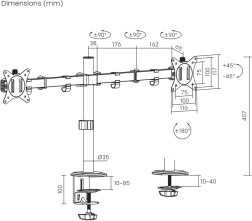 Ce support de bureau universel est conçu pour installer deux écrans LCD, LED ou moniteurs de différentes marques, avec une diagonale de 17" à 32". Des écrans plus grands peuvent être installés s’ils ne dépassent pas la charge maximale et s’ils respectent la norme VESA. Le support améliore le confort de travail grâce aux possibilités de réglage de l’inclinaison, de la rotation et de la hauteur, ce qui optimise l’ergonomie et la visibilité.
