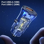 Un design au look transparent met en valeur les composants de précision de ce chargeur de voiture. Le chargeur propose deux ports indépendants pour la charge rapide, compatibles avec les protocoles suivants : QC, AFC, SCP, FCP et Apple2.4.