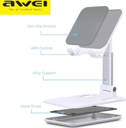 Le support de table universel AWEI X11 en couleur blanche offre une solution stable et réglable pour smartphones et tablettes à la maison comme au bureau. Grâce au réglage en hauteur de 11 à 15 cm, à la réglage de l’angle et à la protection antidérapante en silicone, il assure un visionnage confortable des vidéos, la lecture et les appels vidéo. Sa structure pliable facilite le transport et le rangement.