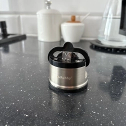 Affûteur de couteaux Ruhhy est le choix idéal pour la cuisine à domicile, grâce à son design compact et sa manipulation facile. Fabriqué en métal et plastique de qualité, il assure un affûtage rapide et efficace.