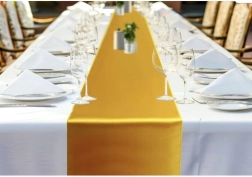 Le chemin de table Ruhhy couleur or est un excellent choix pour décorer la table lors de toute occasion festive. Il est réalisé avec un tissu satiné dense, résistant aux dommages et assure ainsi une utilisation sur plusieurs saisons.