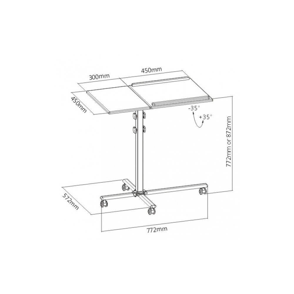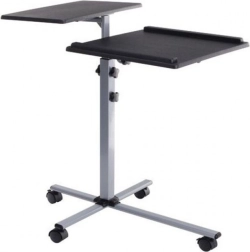 Cette table mobile est un assistant universel pour les présentations en entreprise ou lors de formations. Sa surface divisée offre suffisamment d'espace pour le projecteur et l'ordinateur portable, et la surface réglable en hauteur permet de s'adapter aux besoins de l'utilisateur. De plus, elle dispose de cadres sur une des étagères qui empêchent les appareils placés de glisser.