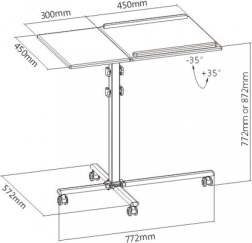 Permet le placement simultané du projecteur et de l'ordinateur portable avec possibilité de réglage individuel de la hauteur et de l'inclinaison.