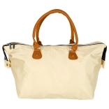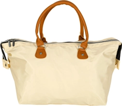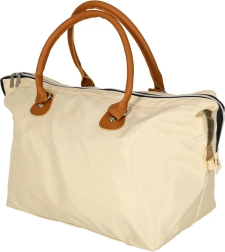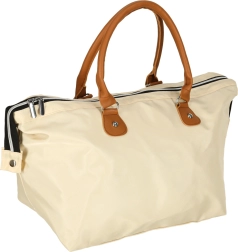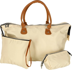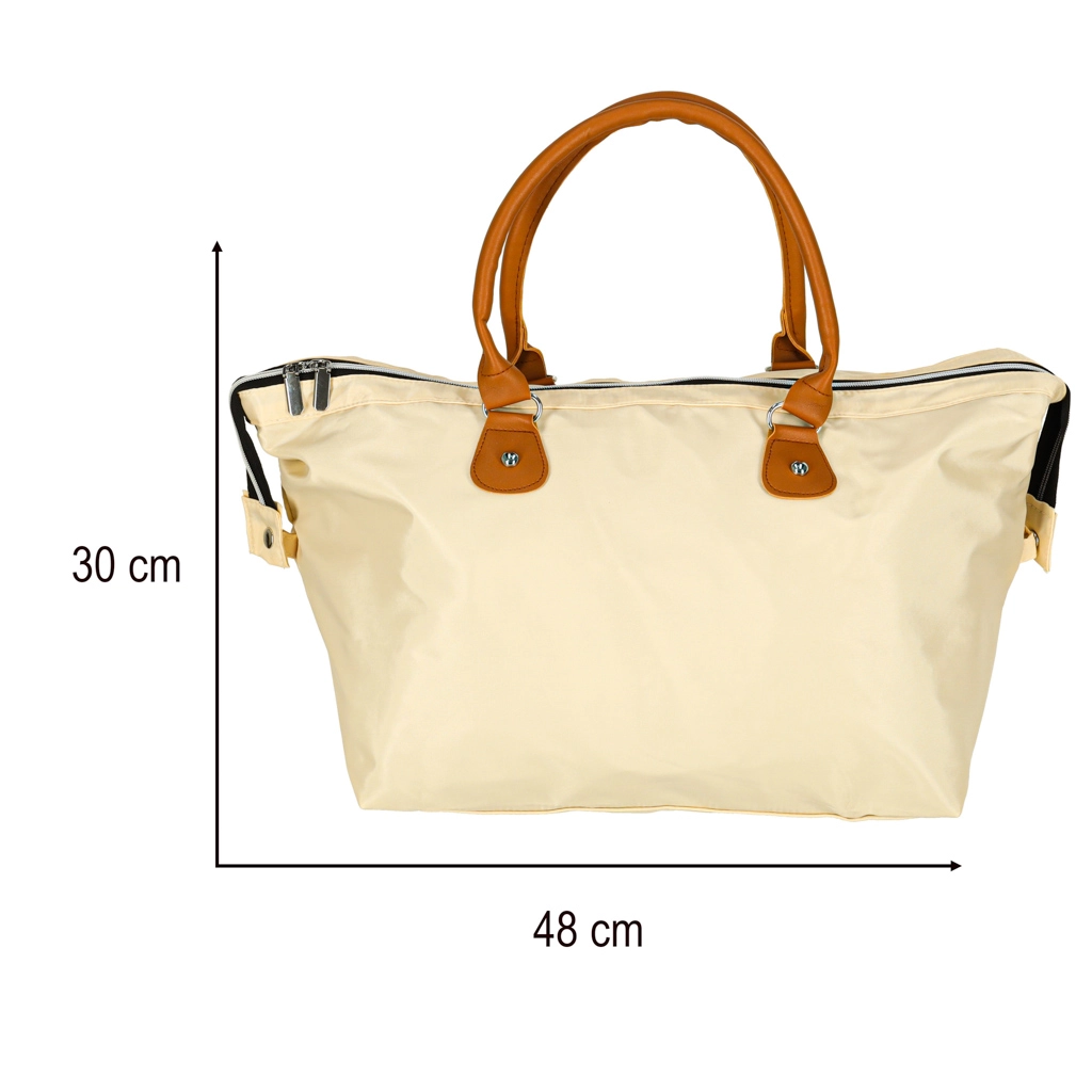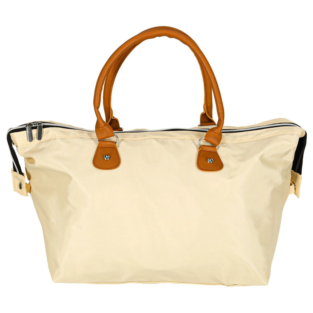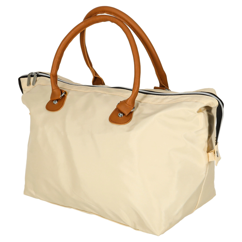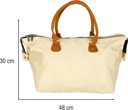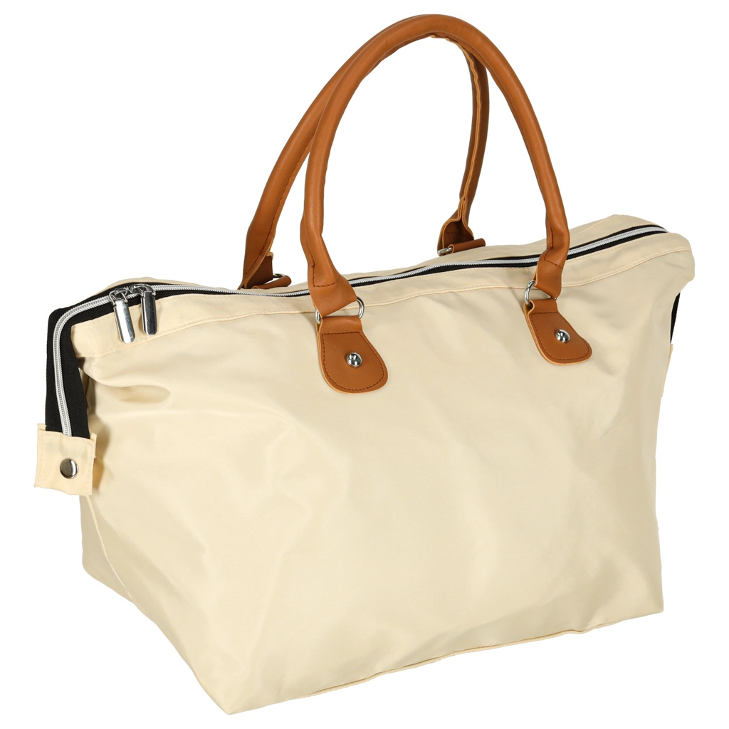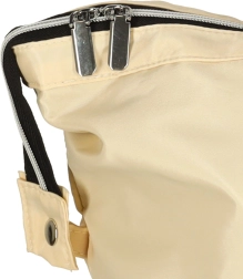 Grande compartimentation principale zippée et coloris beige intemporel pour une utilisation polyvalente sur la poussette ou comme sac de voyage.