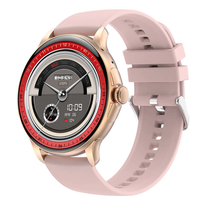 La COLMI V72 combine un design moderne avec un équipement avancé pour un mode de vie actif. L’AMOLED 1,43" lumineux avec une haute résolution de 466 × 466 px reste parfaitement lisible en plein soleil et la fonction Always On Display affiche l’heure et les infos essentielles en permanence. Le boîtier doré et le bracelet en silicone rose apportent une touche de style.