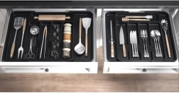 Une disposition claire pour les couverts et les outils de cuisine accélère la préparation des repas et améliore l’organisation du travail quotidien en cuisine.
