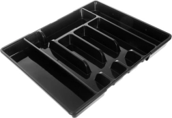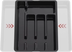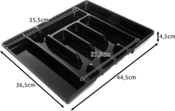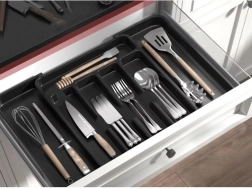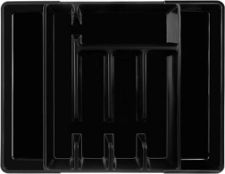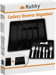 Pratique organiseur noir pour tiroir avec mécanisme extensible qui s’adapte facilement à la largeur du tiroir et garde tous les couverts et ustensiles de cuisine à leur place. Fabriqué en PP résistant, il possède une surface lisse pour un nettoyage facile et offre jusqu’à 7 compartiments bien agencés. Idéal pour une utilisation universelle, une organisation rapide et un look moderne dans chaque cuisine.