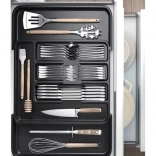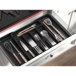 En position de base, il propose 5 compartiments et jusqu’à 7 une fois déployé, vous offrant ainsi plus d’espace pour les couverts et les ustensiles de cuisine. La surface lisse se nettoie d’un coup de chiffon humide – rapidement et de manière hygiénique.