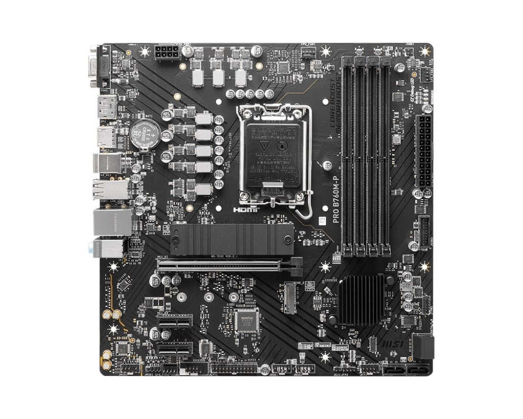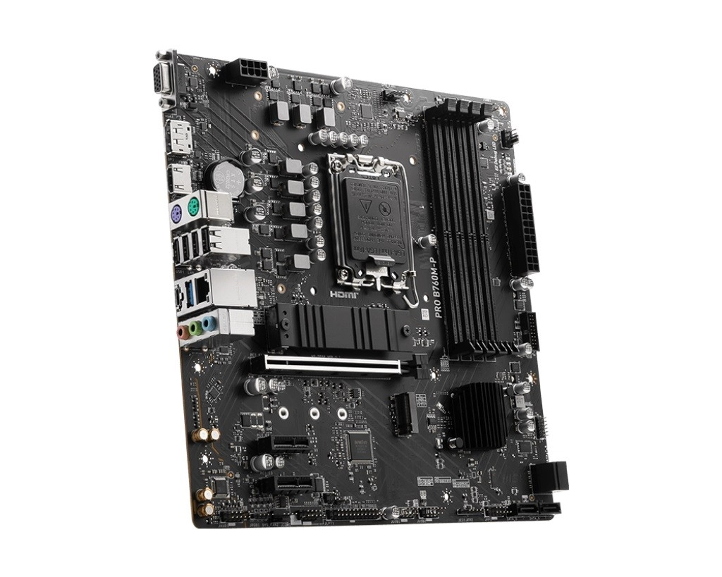 La MSI PRO B760M‑P est une carte mère microATX fiable pour socket LGA1700, compatible avec les processeurs Intel Core de 12e et 13e générations et la mémoire DDR5 rapide. Elle offre le PCIe 4.0, une paire d’emplacements M.2 Gen4, des sorties vidéo modernes HDMI et DisplayPort, ainsi que les technologies Core Boost et Memory Boost pour des performances et une stabilité maximales.