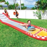 Cette piste de course gonflable transforme votre jardin en petit circuit. Deux matelas stylés au design de voitures de course invitent à des duels à deux, tandis que les poignées solides assurent une tenue confortable et sûre. Pour une glisse encore plus rapide, raccordez simplement un tuyau d’arrosage et transformez la piste en attraction aquatique rafraîchissante.