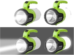 Grâce à son support spécial, la lampe peut être facilement suspendue et utilisée comme éclairage supérieur dans les tentes et autres espaces extérieurs. De plus, elle dispose de deux modes d’éclairage et d’une fonction veilleuse, ce qui accroît sa polyvalence.