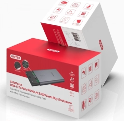 Le double chipset de haute qualité avec prise en charge UASP permet un traitement efficace des commandes et des vitesses supérieures de plusieurs dizaines de pourcents par rapport à l’USB classique. La prise en charge du TRIM aide à maintenir des performances constantes et une plus longue durée de vie de vos SSD NVMe. Le châssis en aluminium avec ventilateur intégré et les pads thermiques fournis assurent des températures stables même lors de longs transferts. Le mécanisme Secure‑Lock protège contre les ouvertures accidentelles et permet un échange rapide des disques sans outil.