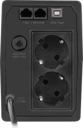 Il intègre une AVR – correction automatique de la tension, qui compense les baisses et surtensions momentanées du réseau, ainsi qu’une protection RJ‑11/RJ‑45 pour les lignes téléphoniques et de données. La protection contre les surcharges protège l’UPS et les appareils connectés, et le mode silencieux réduit au minimum les alertes sonores lors du fonctionnement sur batterie – idéal pour le salon ou le bureau.