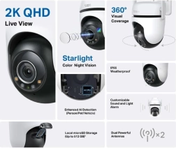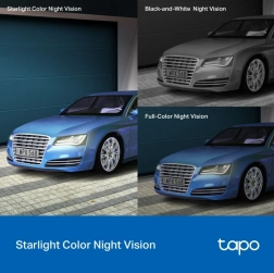 La caméra Tapo C520WS est conçue pour une surveillance extérieure efficace avec des fonctionnalités incluant une résolution allant jusqu'à 2560 × 1440, permettant de capturer plus de détails que les caméras traditionnelles de 1080p. Le mode nuit Starlight avec rendu entièrement en couleurs assure une excellente visibilité même en basse lumière grâce à l'objectif F1.6.