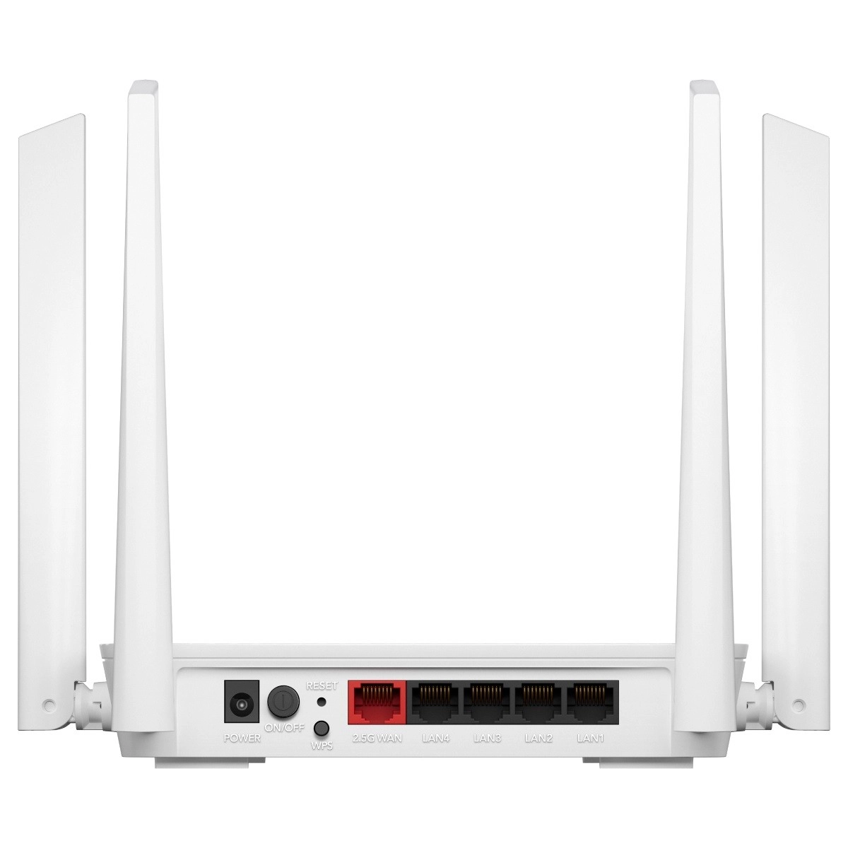 Le routeur est équipé d’un processeur double‑cœur ARM Cortex‑A53 cadencé à 1,3 GHz, offrant un fonctionnement fluide. Il dispose d’un port WAN 2,5 Gbps pour la connexion Internet très haut débit et de quatre ports LAN gigabit pour les connexions filaires.