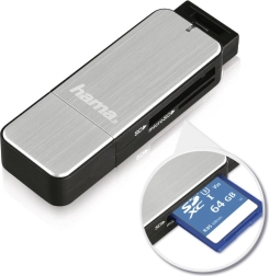 Lecteur de cartes compact avec interface USB 3.0 pour un transfert rapide des données depuis les cartes SD et microSD. Il offre des vitesses élevées (UHS‑I), une construction métallique robuste et une indication LED de l’état pour une utilisation pratique et fiable à la maison comme en déplacement.