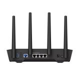 Voici le routeur TUF Gaming AX4200, qui allie style élégant et technologie performante. Ses quatre antennes assurent une portée de signal étendue, même à plus grande distance. Le routeur prend en charge la bande double, garantissant une connexion stable sans interférences. Il est idéal pour les joueurs qui exigent une faible latence et un débit élevé.