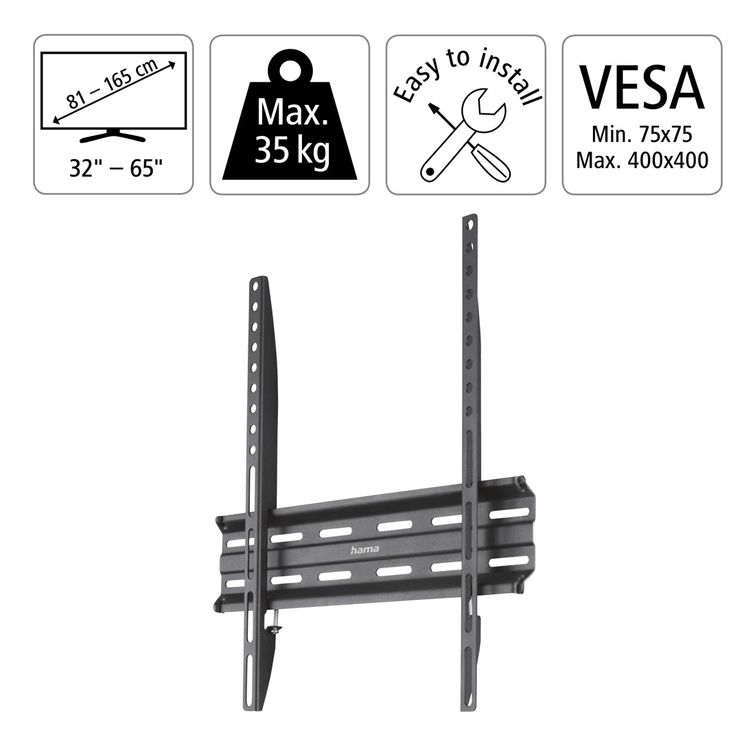 Le support de fixation Hama est la solution idéale pour une installation murale sûre et esthétique de votre téléviseur. Avec une distance au mur de seulement 2,3 cm et une construction en acier robuste, il assure stabilité et élégance.