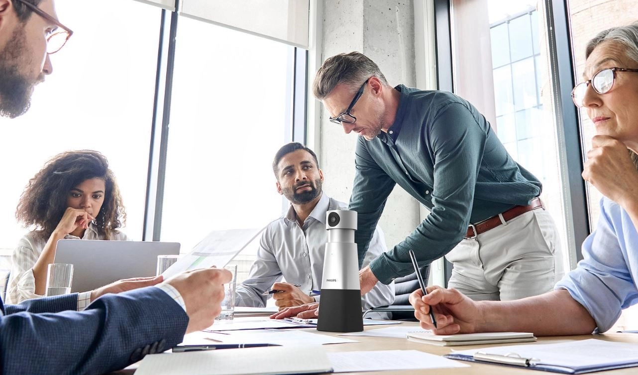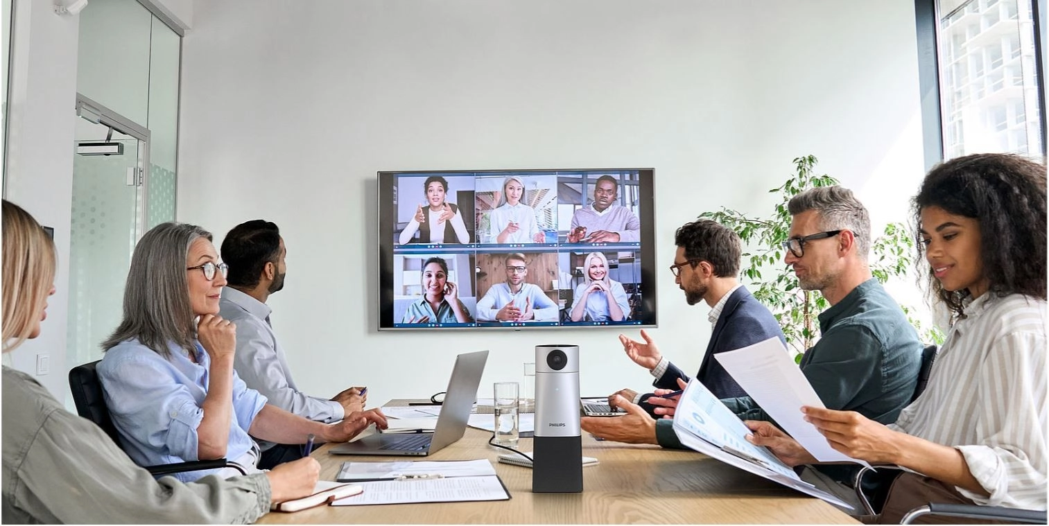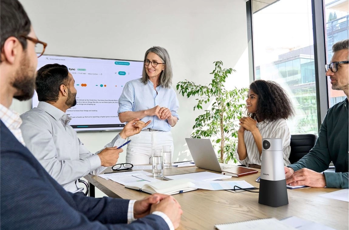 Philips SmartMeeting est une solution complète pour la conférence audio et vidéo HD avec l’assistant Sembly Meeting Assistant, qui gère les comptes rendus automatiques, les transcriptions et les actions. La caméra 4K avec suivi de la voix et pan/tilt/zoom flexible capture chaque participant avec une netteté parfaite, tandis que le microphone 360° à quatre éléments capte la parole jusqu’à 6 mètres.