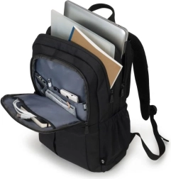 Le compartiment verrouillable pour ordinateur portable offre une double protection à votre appareil de 15 à 17,3 pouces : grâce à un rembourrage périphérique en mousse haute densité (HDF) et à une fixation fiable via une sangle de sécurité élastique. Le compartiment principal spacieux offre suffisamment de place pour des documents ou d’autres objets essentiels. Grâce au compartiment pour tablette jusqu’à 12,9" et à la sangle pour transporter vos écouteurs en douceur, vos compagnons de voyage sont parfaitement en sécurité. La grande poche frontale aide à garder l’ordre grâce à des compartiments fonctionnels pour smartphone, powerbank, stylos et autres accessoires mobiles. Les poches extérieures peuvent accueillir une bouteille d’eau et un parapluie, libérant ainsi de la place à l’intérieur du sac à dos. Le rembourrage dorsal ergonomique, la bretelle confortable et la sangle pour trolley à l’arrière garantissent un transport aisé vers le travail, l’université ou lors de voyages plus longs.