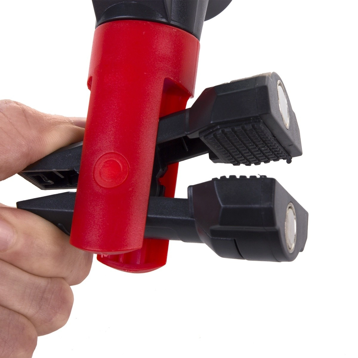 Le crochet pivotant et la paire d’aimants permettent de suspendre ou de fixer sur le métal. Gardez les deux mains libres et la lumière toujours là où vous en avez besoin.