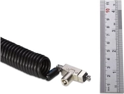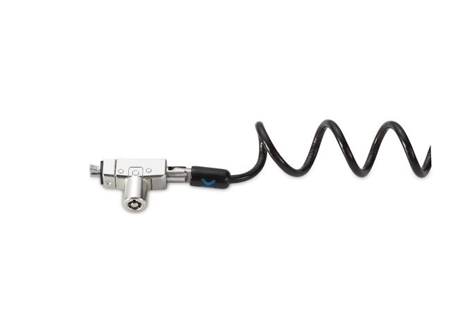 - Le câble auto‑rétractable en acier au carbone est facile à transporter et robuste, s’étend jusqu’à 1,8 m et se rétracte à 76,2 mm. La gaine plastique protège la surface. Le système de clés de 5 mm est commun à tous les antivols Kensington récents, ce qui permet de ne gérer qu’un seul système de clés.