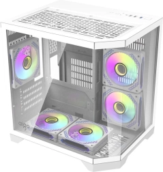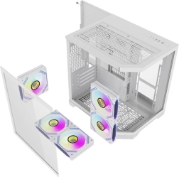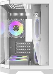 Le boîtier PC blanc élégant Darkflash FT350 combine un design moderne avec un refroidissement hautement efficace grâce à cinq ventilateurs aRGB et trois panneaux transparents en verre trempé.