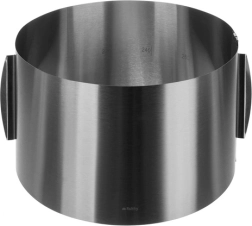 Cercle universel en acier inoxydable de haute qualité, idéal pour cuire des génoises, monter plusieurs couches et préparer des desserts à froid. La hauteur de 20 cm offre suffisamment d’espace pour les gâteaux hauts, mousses et cheesecakes. Des clips à enclenchement solides maintiennent le diamètre choisi et assurent une stabilité même à l’extension maximale.