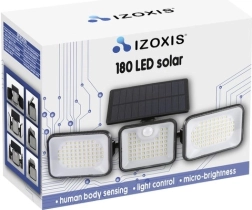 Puissante lampe solaire IZOXIS avec 180 LED, capteur de mouvement PIR et capteur crépusculaire, elle éclaire fiablement le jardin, l’entrée, le garage ou la terrasse. Elle offre une luminosité de 550 lm, 3 panneaux réglables pour une couverture large jusqu’à 300°, une étanchéité IP65 et une longue autonomie de 8 à 10 h après une charge complète – sans facture d’électricité.