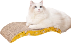 Ce transat grattoir en carton au profil ondulé répond parfaitement aux besoins naturels des chats : il offre une surface de griffage durable ainsi qu’un transat confortable pour paresser. Le carton naturel encourage le griffage, réduit le stress et maintient les griffes en bon état, tandis que l’imprimé jaune ludique ravit l’œil du propriétaire.