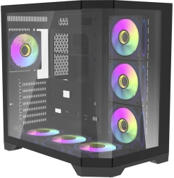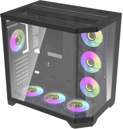 Le boîtier PC Darkflash FT418 Pro, élégant et spacieux, combine trois panneaux en verre trempé avec un refroidissement performant – le pack comprend 7 ventilateurs ARGB préinstallés. Il prend en charge les cartes mères ATX/M-ATX/ITX, les cartes graphiques jusqu’à 400 mm et le refroidissement liquide jusqu’à 360 mm, ce qui en fait un excellent choix pour les configurations gaming et professionnelles exigeantes.