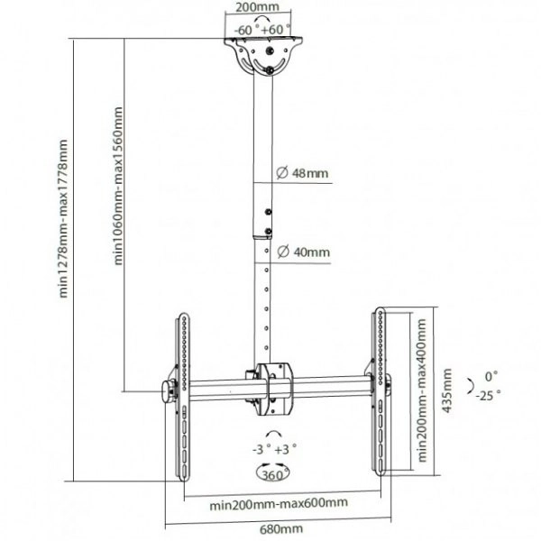 Un support plafond fiable pour téléviseurs et écrans de 37–70" qui permet d’économiser de l’espace et d’obtenir l’angle de vision idéal. Grâce à sa structure en acier et à la prise en charge du standard VESA, il offre une installation sûre et polyvalente à domicile, au bureau et dans les espaces commerciaux.