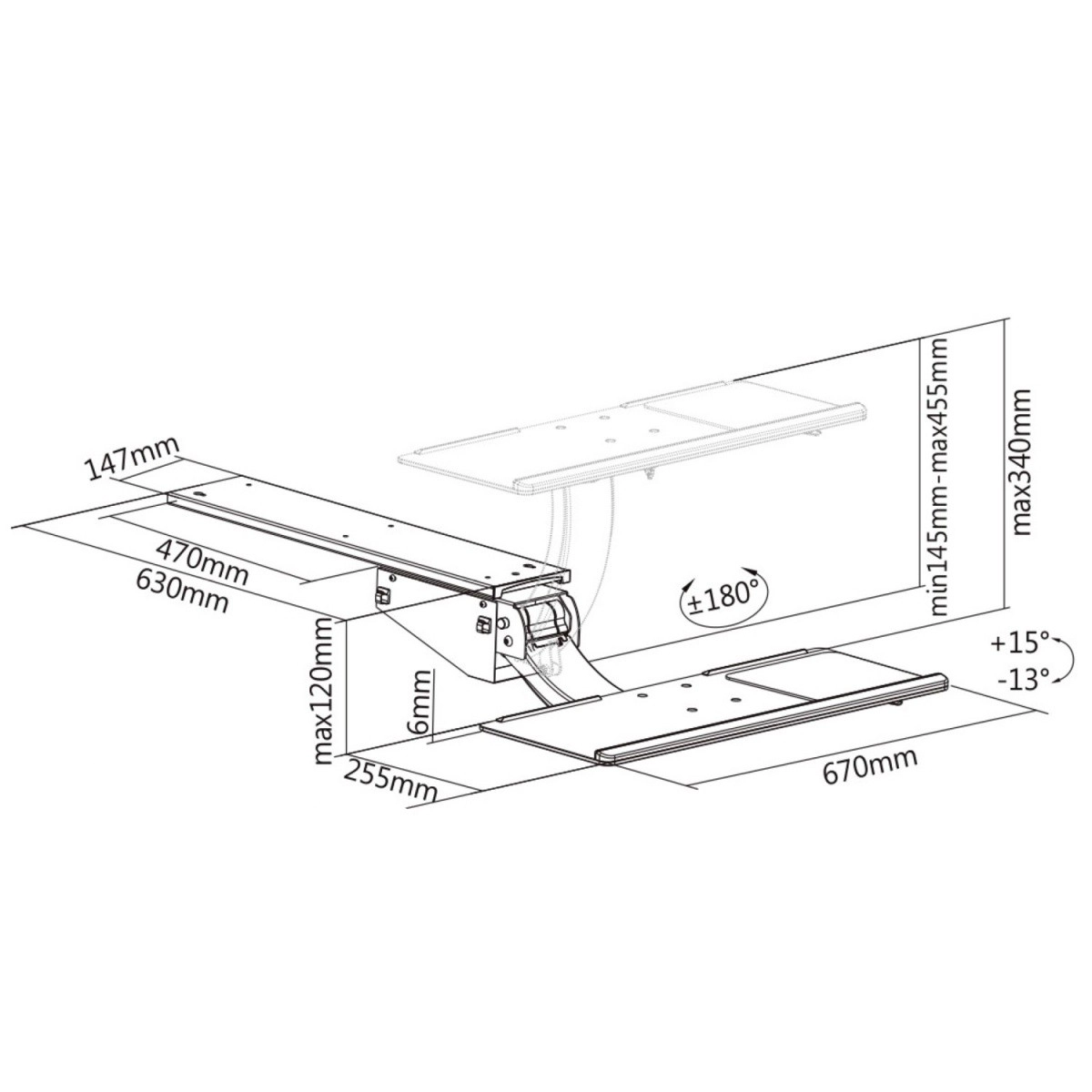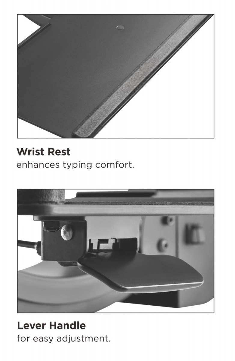 Le mécanisme coulissant avec bras extensibles assure un réglage en douceur de la distance du clavier par rapport au bord du bureau, exactement selon vos besoins.
