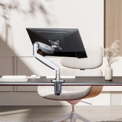 Support universel pour moniteur Maclean, adapté aux écrans de 17" à 45" et d’une charge maximale de 16 kg. Ce support offre une excellente ergonomie et une grande adaptabilité grâce au réglage fluide de l’inclinaison, de la rotation et de la hauteur via le vérin à gaz.