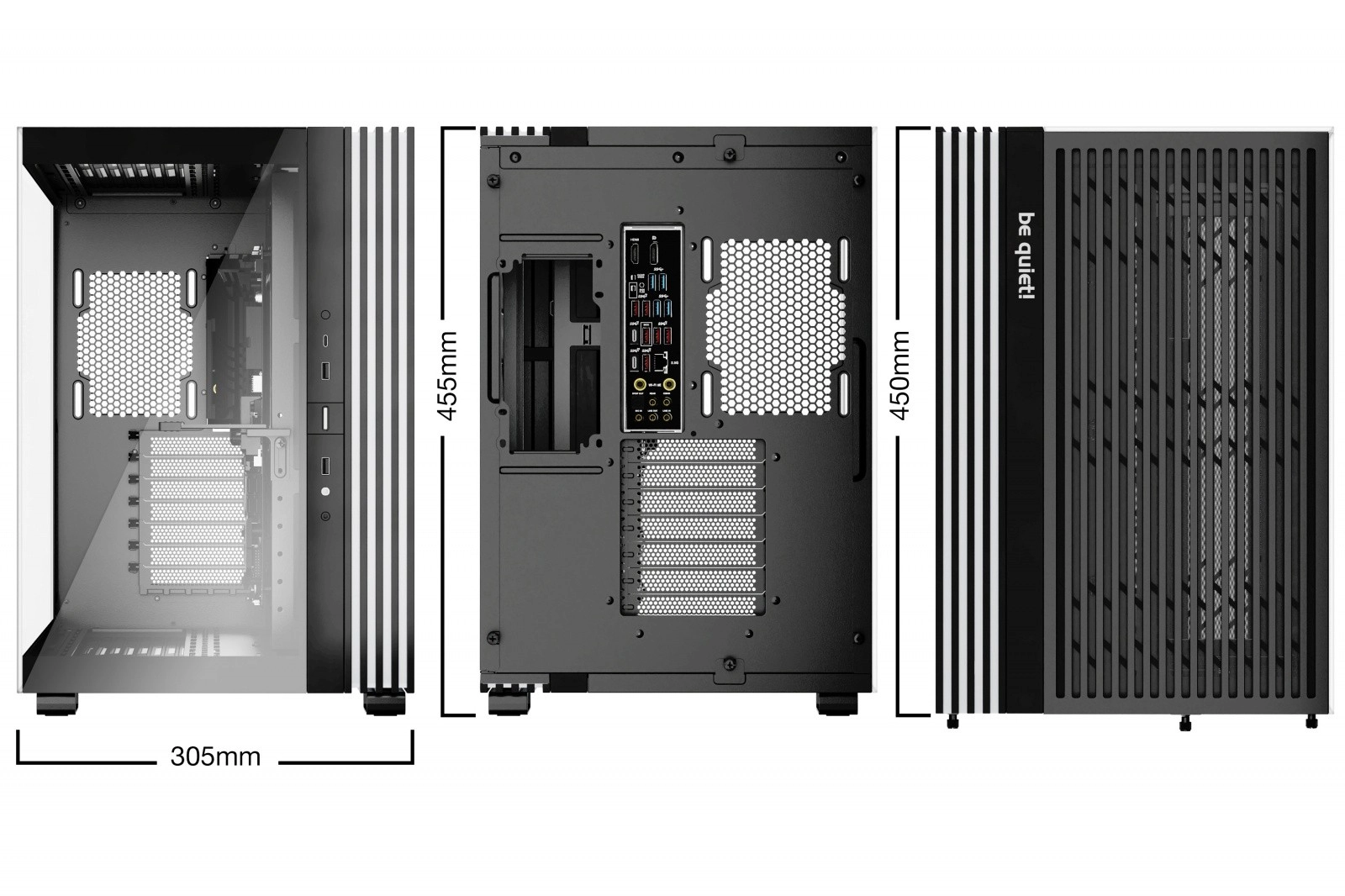 De grands panneaux transparents à l’avant et sur le côté offrent une vue panoramique remarquable sur tous les composants de l’ordinateur.
