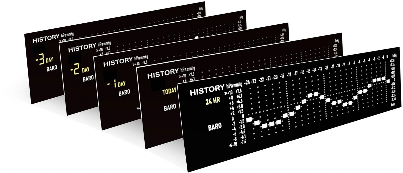 - Relative/absolue (hPa, inHg, mmHg)